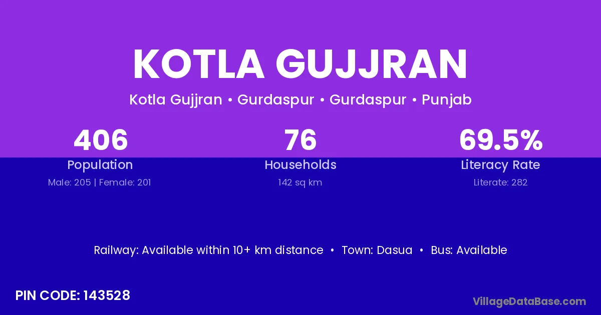 According to Census 2011 information, the village code of Kotla Gujjran village is 143601.