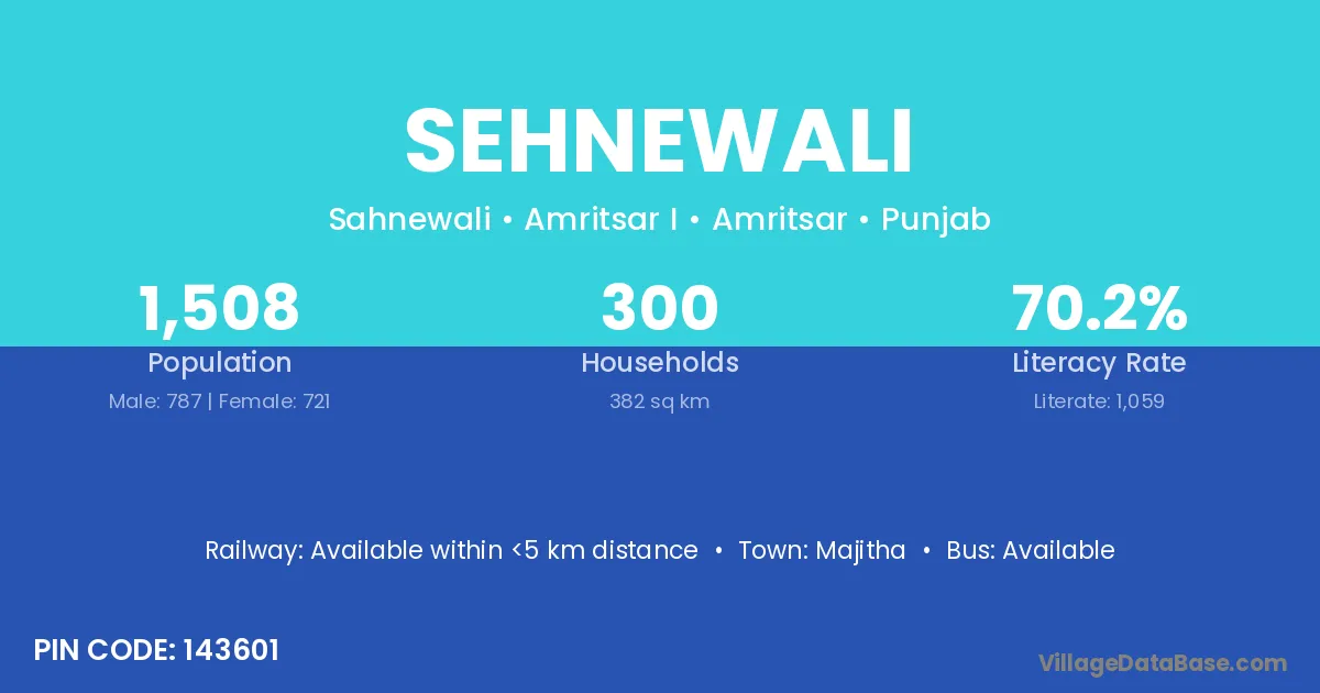 Majitha is the nearest town to Sehnewali village for major economic activities