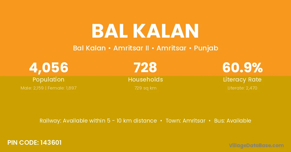 Amritsar is the nearest town to Bal Kalan village for major economic activities