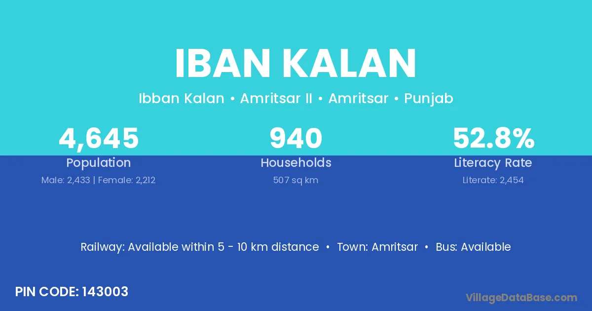 Amritsar is the nearest town to Iban Kalan village for major economic activities