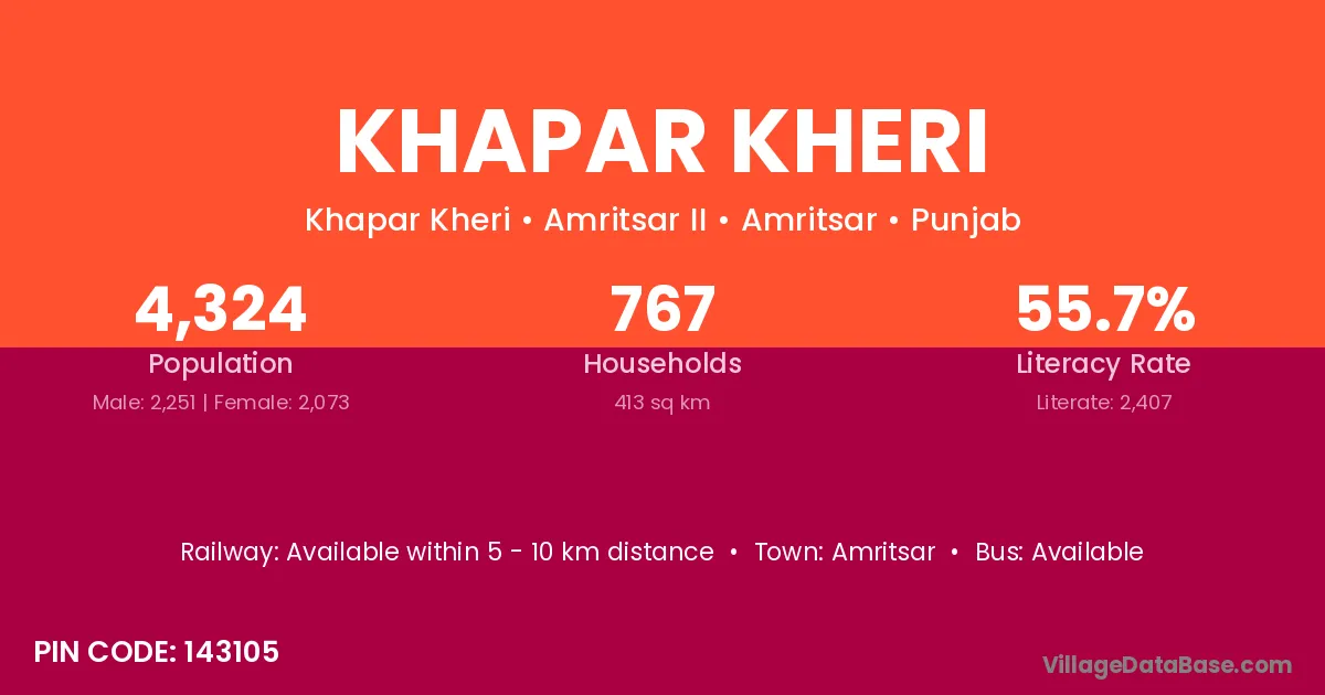 Amritsar is the nearest town to Khapar Kheri village for major economic activities