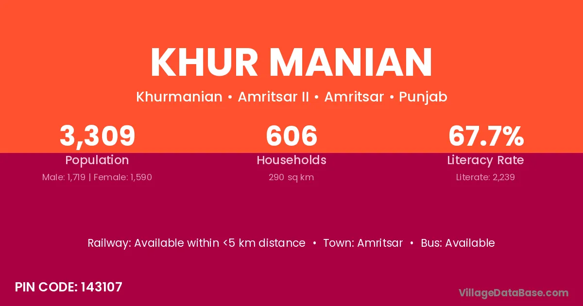 Amritsar is the nearest town to Khur Manian village for major economic activities