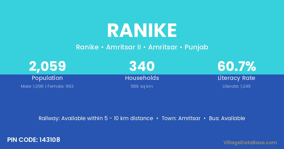 Amritsar is the nearest town to Ranike village for major economic activities