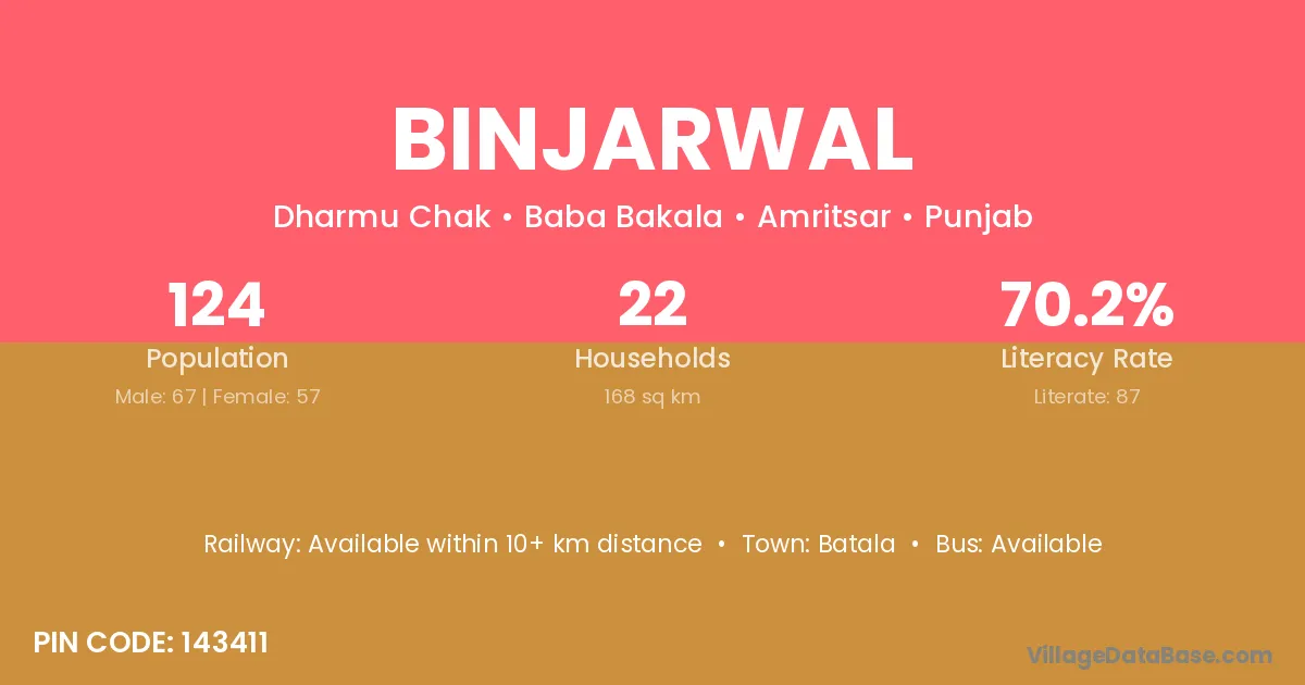 Batala is the nearest town to Binjarwal village for major economic activities