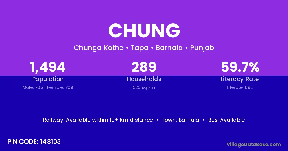 According to Census 2011 information, the village code of Chung village is 143114.