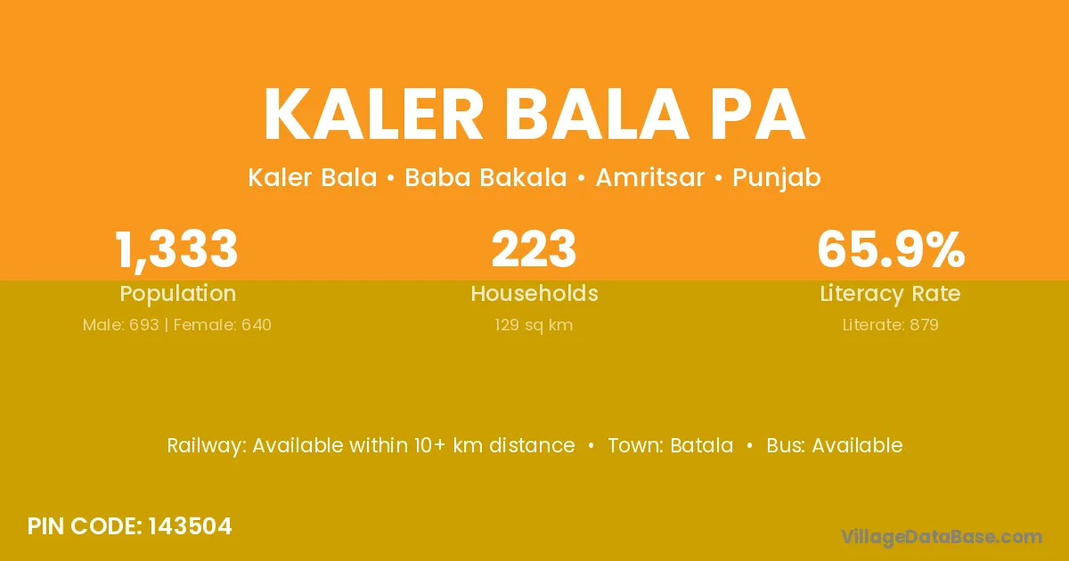 Kaler Bala Pa village has a total population of 1,333 people, of which 693 are males and 640 are females.