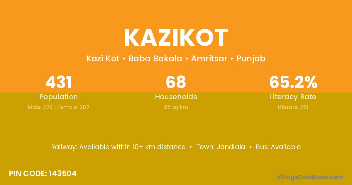 Jandiala is the nearest town to Kazikot village for major economic activities