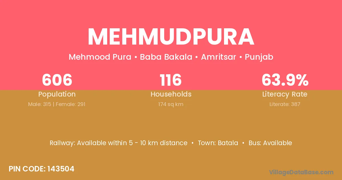Batala is the nearest town to Mehmudpura village for major economic activities