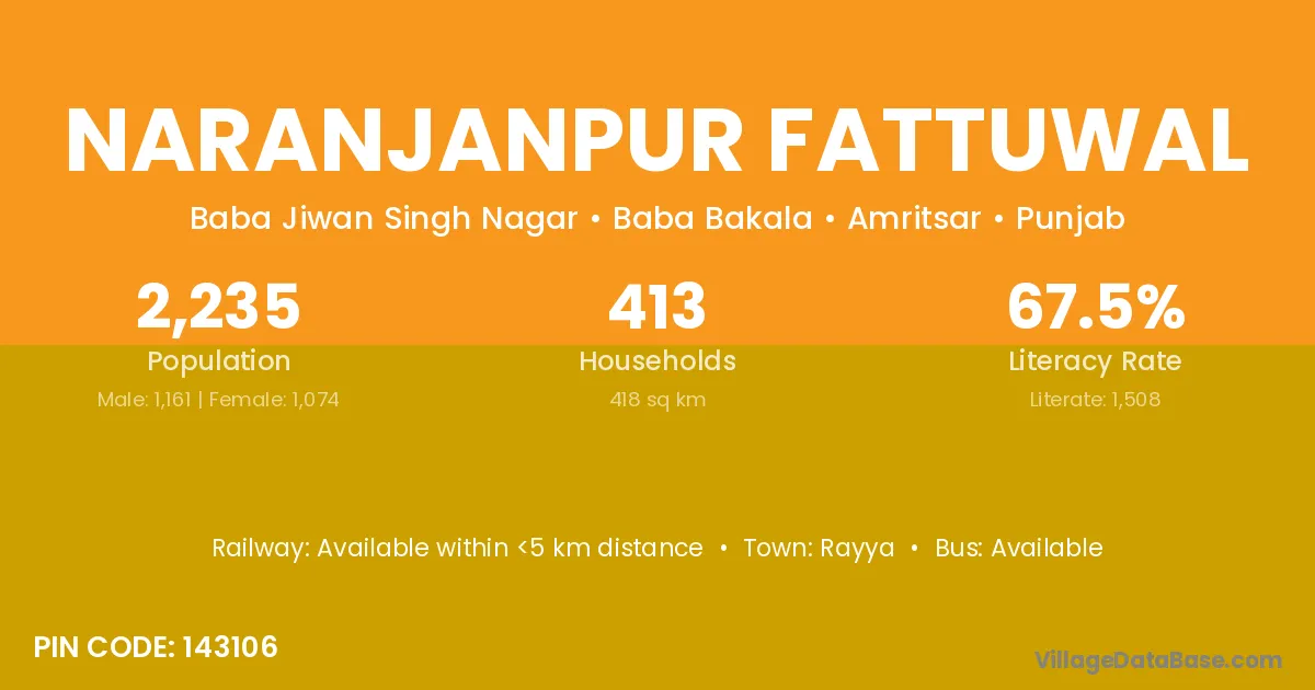 According to Census 2011 information, the village code of Naranjanpur Fattuwal village is 143106.