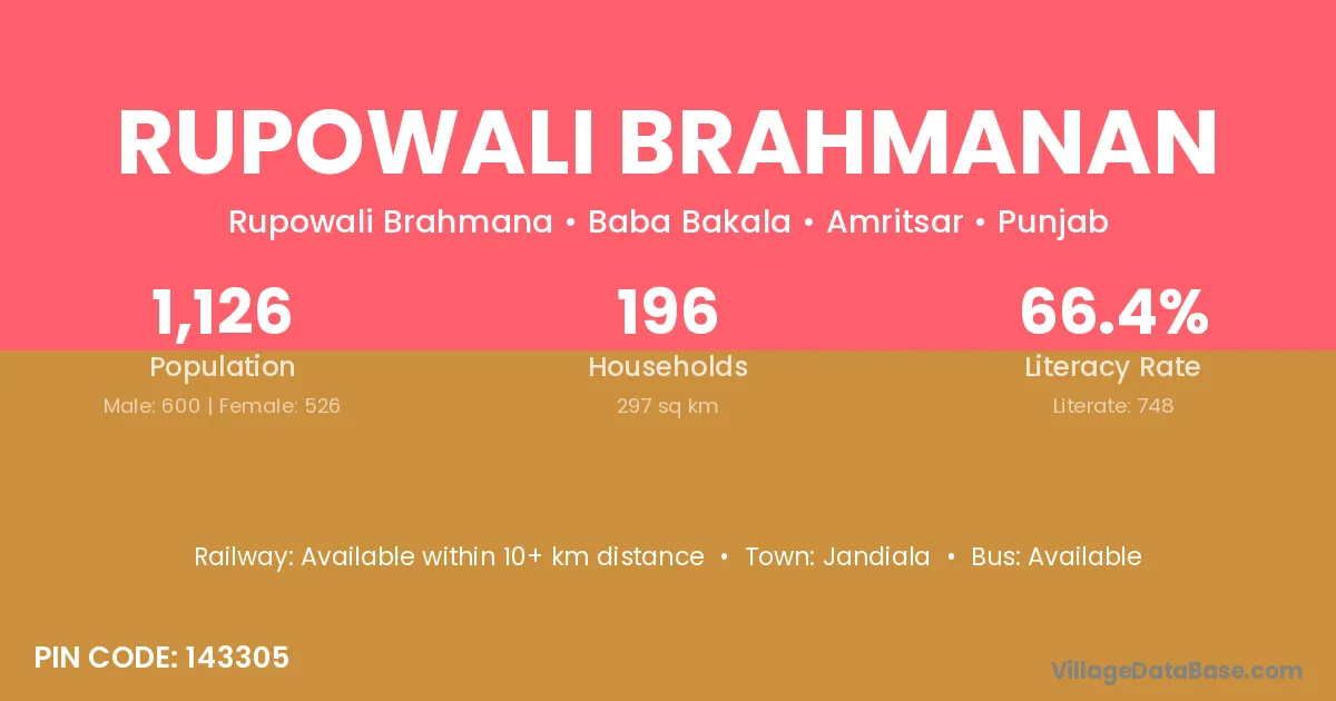 Jandiala is the nearest town to Rupowali Brahmanan village for major economic activities