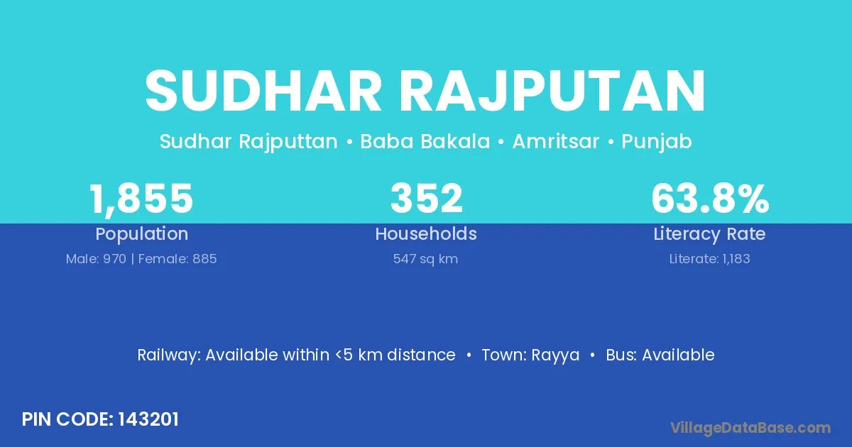 According to Census 2011 information, the village code of Sudhar Rajputan village is 143201.