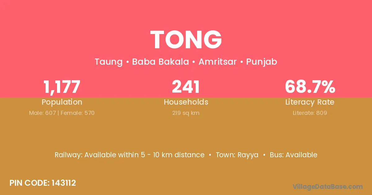 Tong village is located in the Baba Bakala Tehsil of the Amritsar district in Punjab .