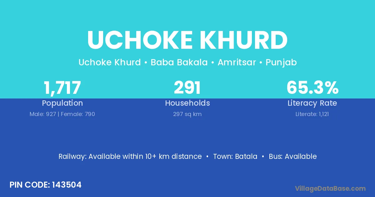 Batala is the nearest town to Uchoke Khurd village for major economic activities