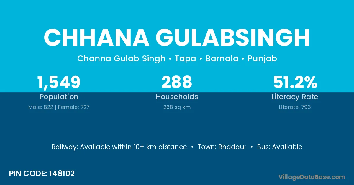 Bhadaur is the nearest town to Chhana Gulabsingh village for major economic activities
