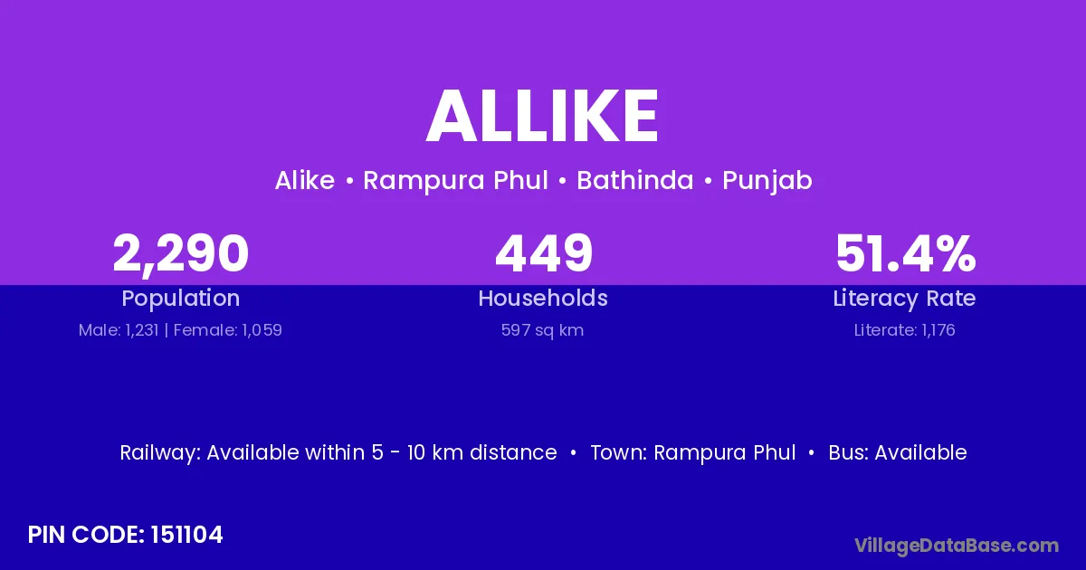 Rampura Phul is the nearest town to Allike village for major economic activities
