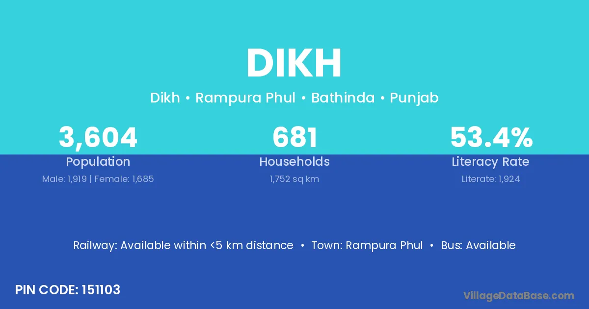 Rampura Phul is the nearest town to Dikh village for major economic activities