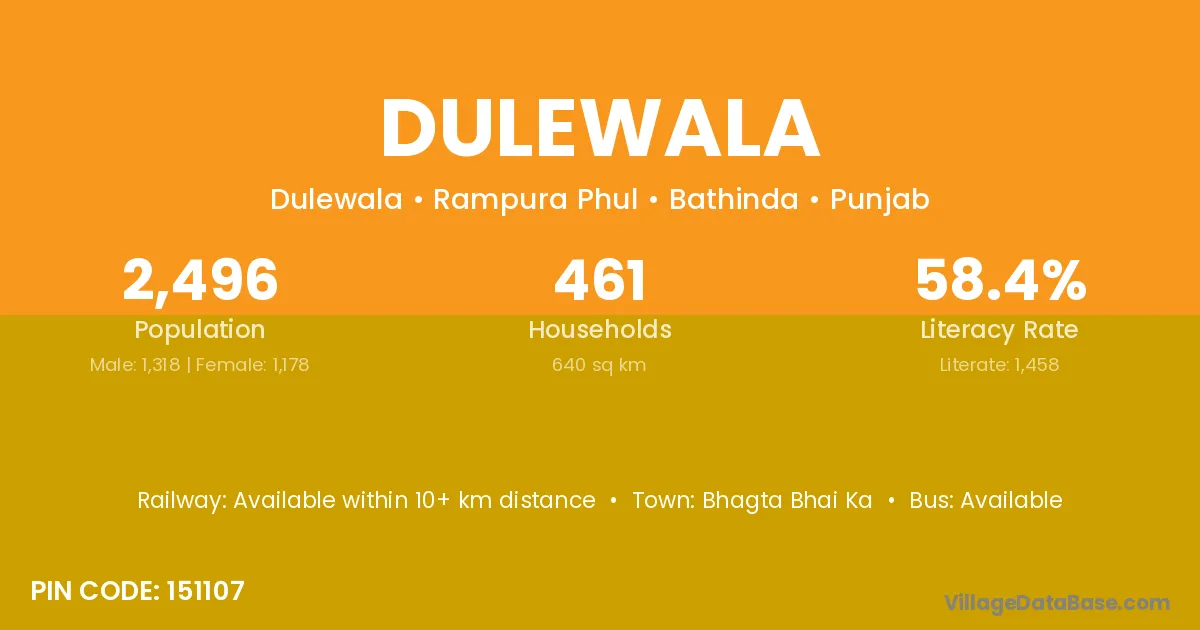 Bhagta Bhai Ka is the nearest town to Dulewala village for major economic activities