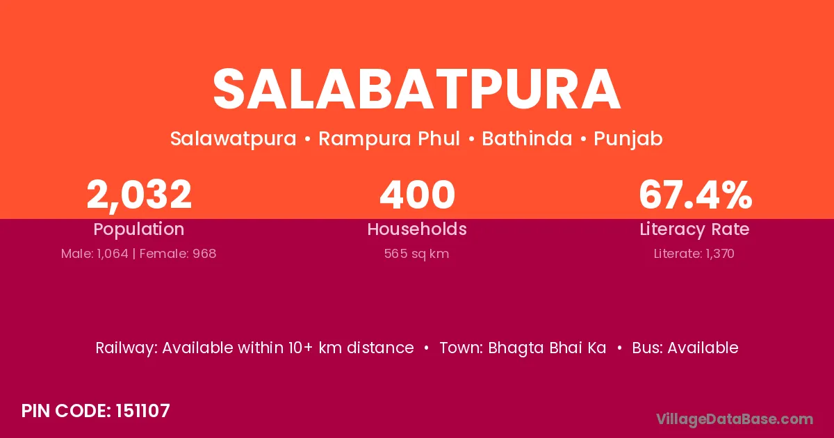 Bhagta Bhai Ka is the nearest town to Salabatpura village for major economic activities