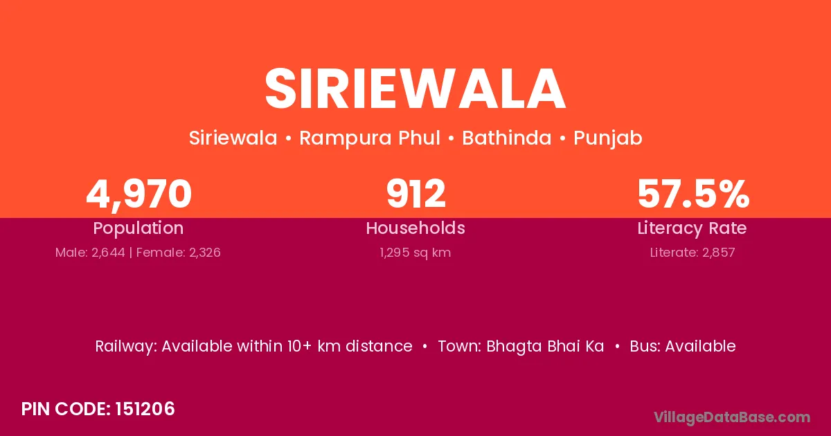 Siriewala village is located in the Rampura Phul Tehsil of the Bathinda district in Punjab .