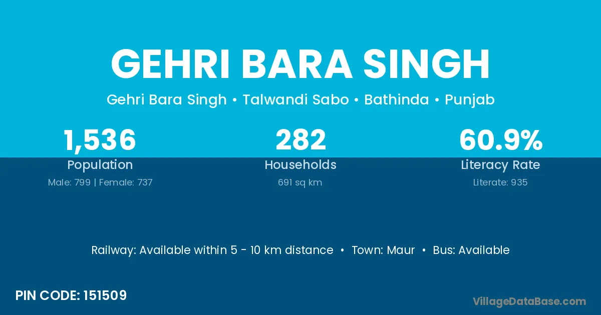 Maur is the nearest town to Gehri Bara Singh village for major economic activities