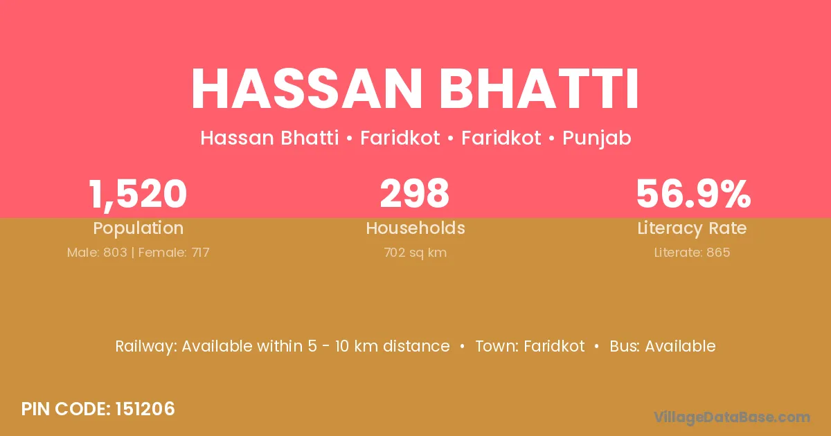 Faridkot is the nearest town to Hassan Bhatti village for major economic activities