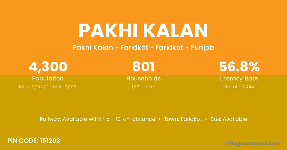 Faridkot is the nearest town to Pakhi Kalan village for major economic activities