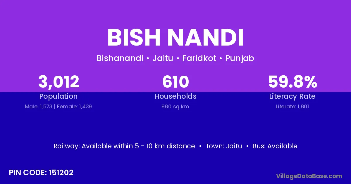 Bish Nandi village is located in the Jaitu Tehsil of the Faridkot district in Punjab .