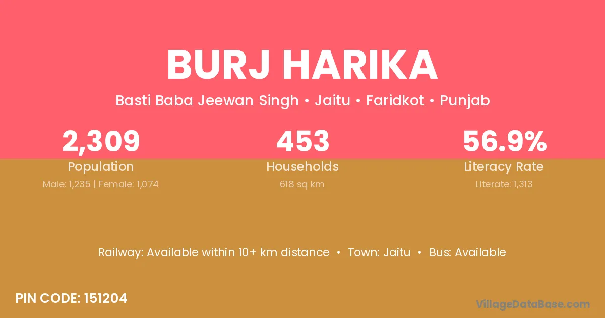 According to Census 2011 information, the village code of Burj Harika village is 151204.