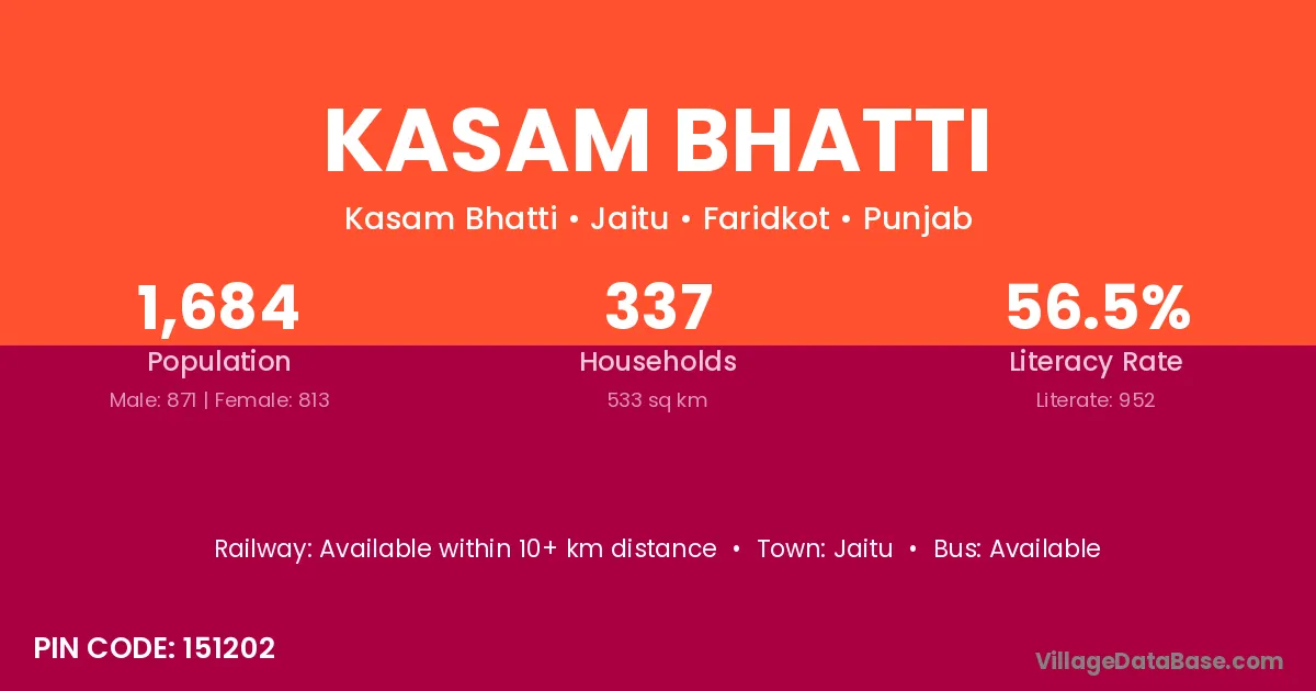 Kasam Bhatti village has a total population of 1,684 people, of which 871 are males and 813 are females.
