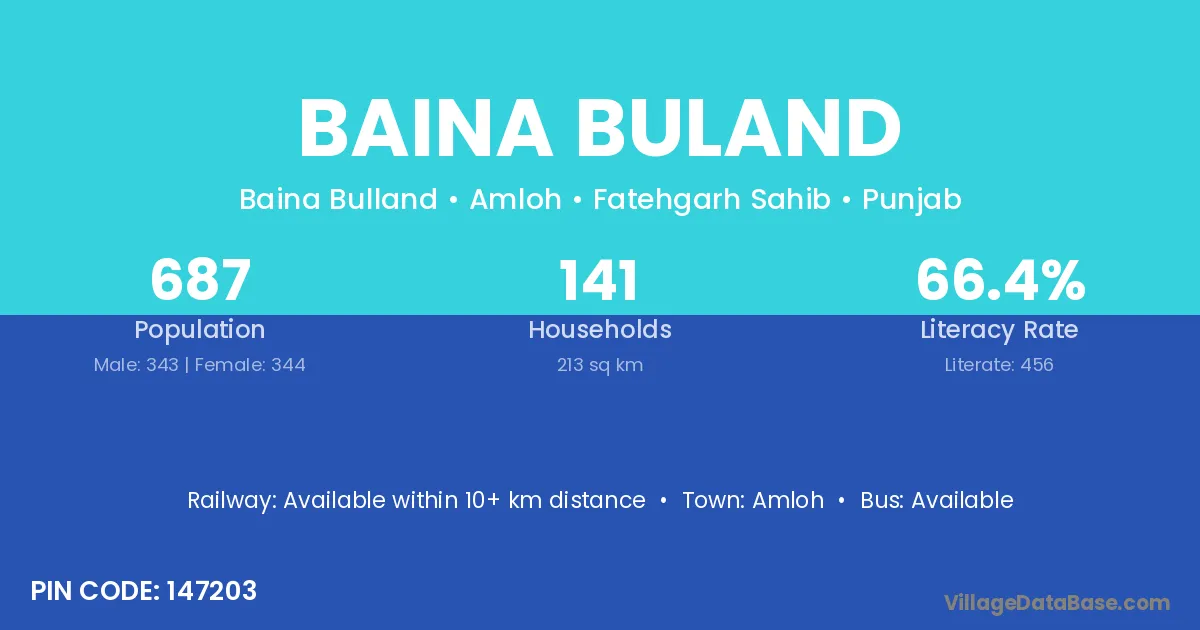 Amloh is the nearest town to Baina Buland village for major economic activities