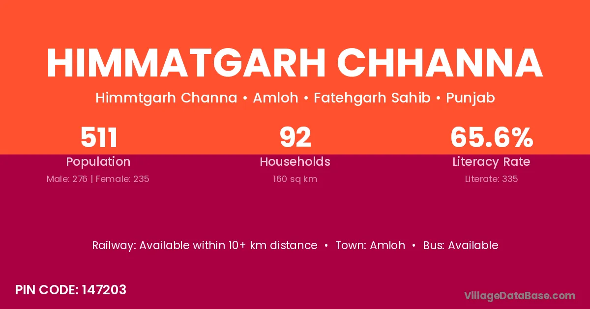 Amloh is the nearest town to Himmatgarh Chhanna village for major economic activities