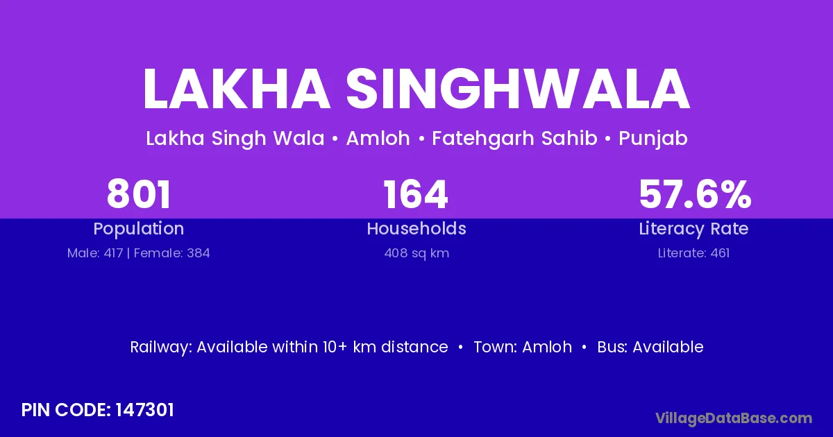 According to Census 2011 information, the village code of Lakha Singhwala village is 147301.