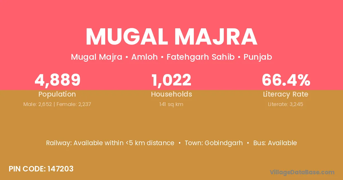 According to Census 2011 information, the village code of Mugal Majra village is 147203.