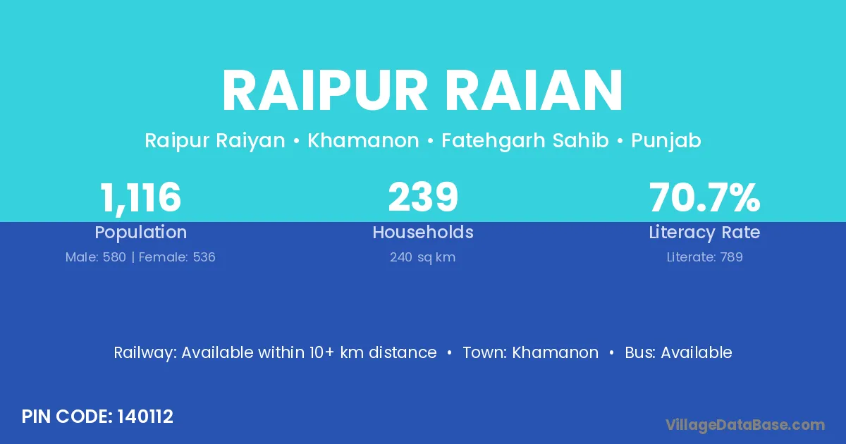 Amloh is the nearest town to Raipur Raian village for major economic activities