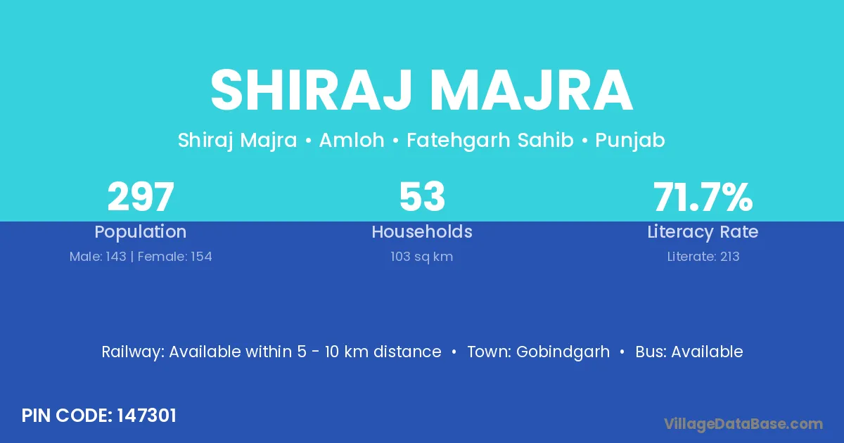 Gobindgarh is the nearest town to Shiraj Majra village for major economic activities