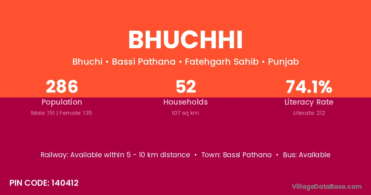 Bassi Pathana is the nearest town to Bhuchhi village for major economic activities