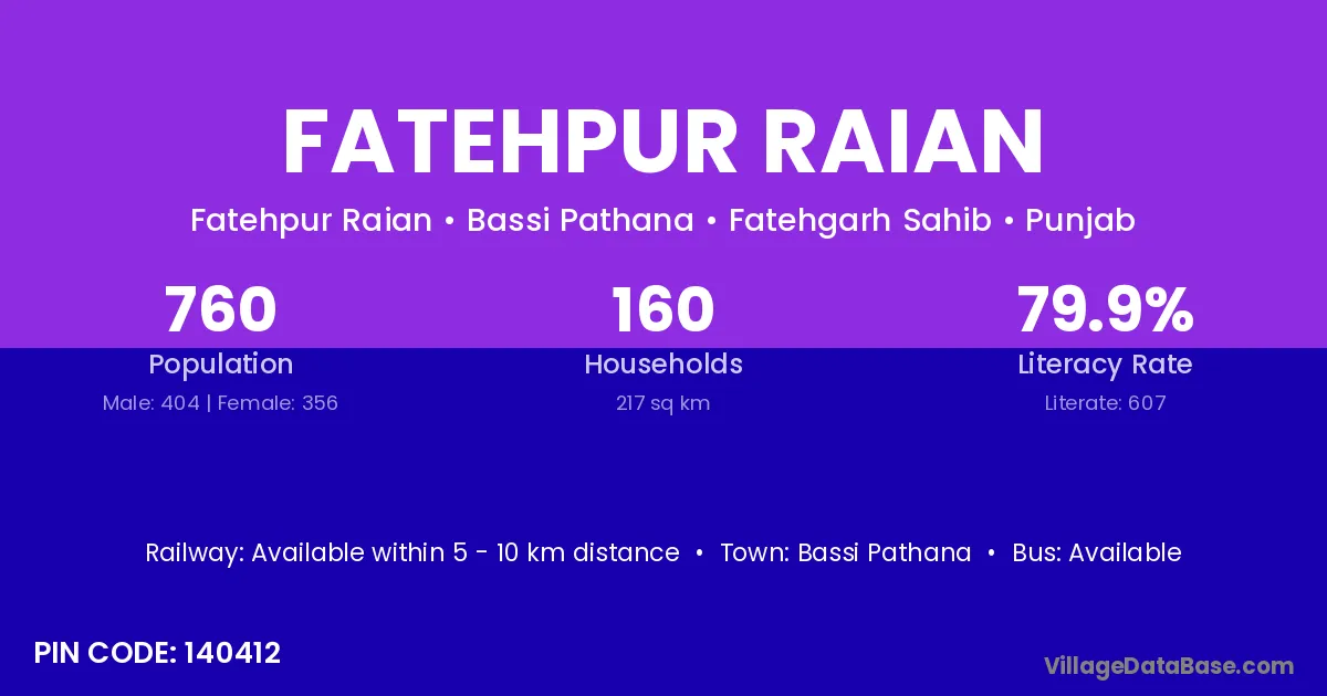 Bassi Pathana is the nearest town to Fatehpur Raian village for major economic activities
