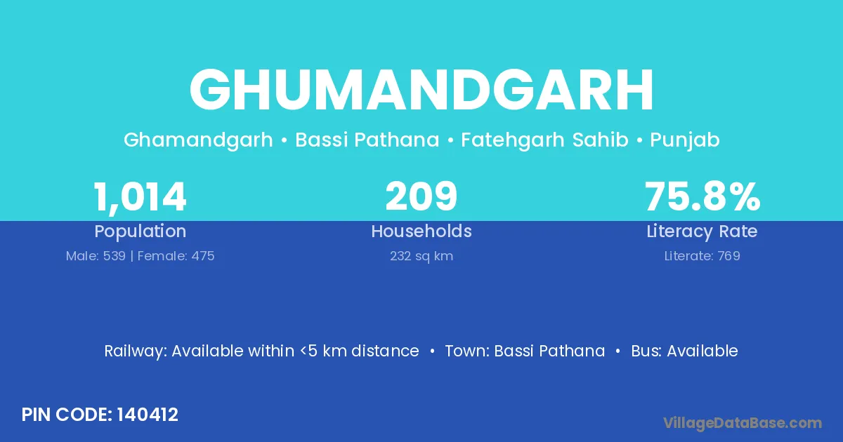 Bassi Pathana is the nearest town to Ghumandgarh village for major economic activities