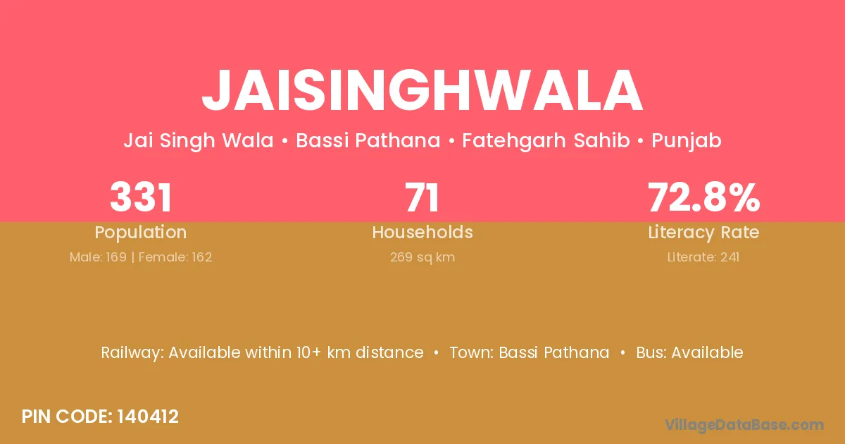 Bassi Pathana is the nearest town to Jaisinghwala village for major economic activities