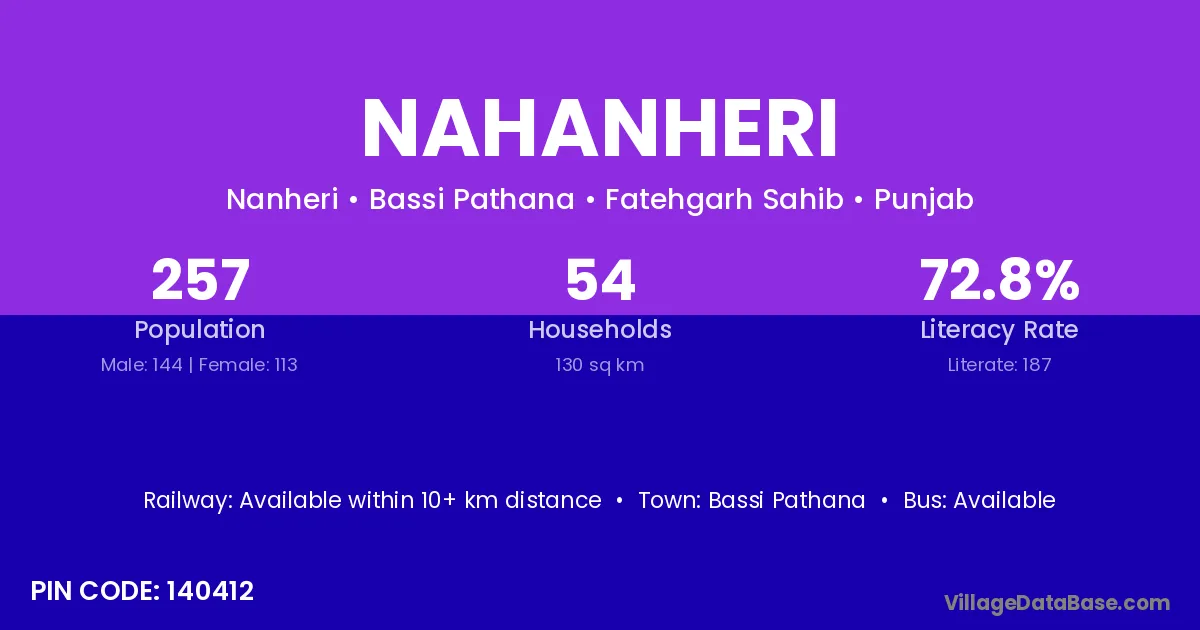 Bassi Pathana is the nearest town to Nahanheri village for major economic activities