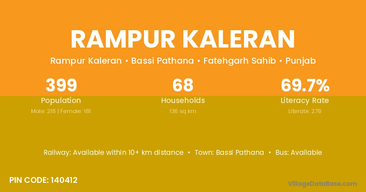 Rampur Kaleran village has a total population of 399 people, of which 218 are males and 181 are females.