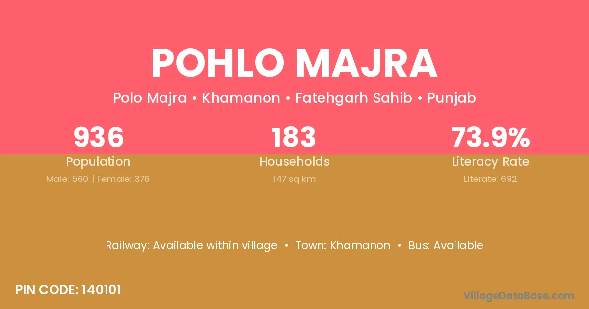 Khamanon is the nearest town to Pohlo Majra village for major economic activities