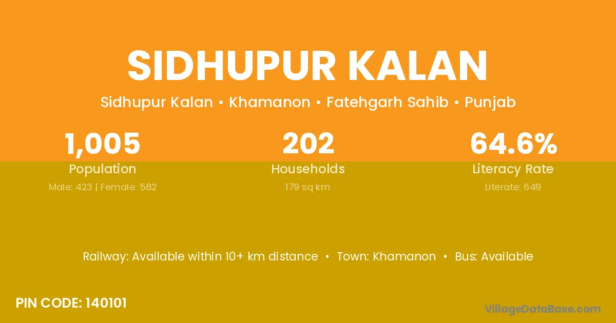 Sidhupur Kalan village has a total population of 1,005 people, of which 423 are males and 582 are females.