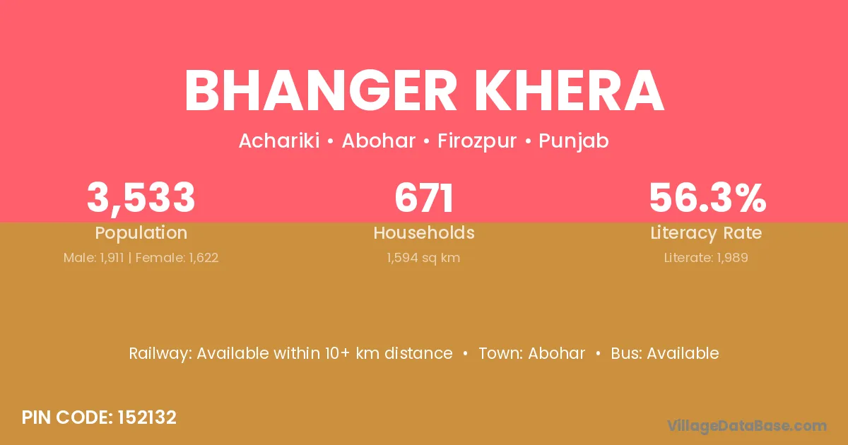 Abohar is the nearest town to Bhanger Khera village for major economic activities