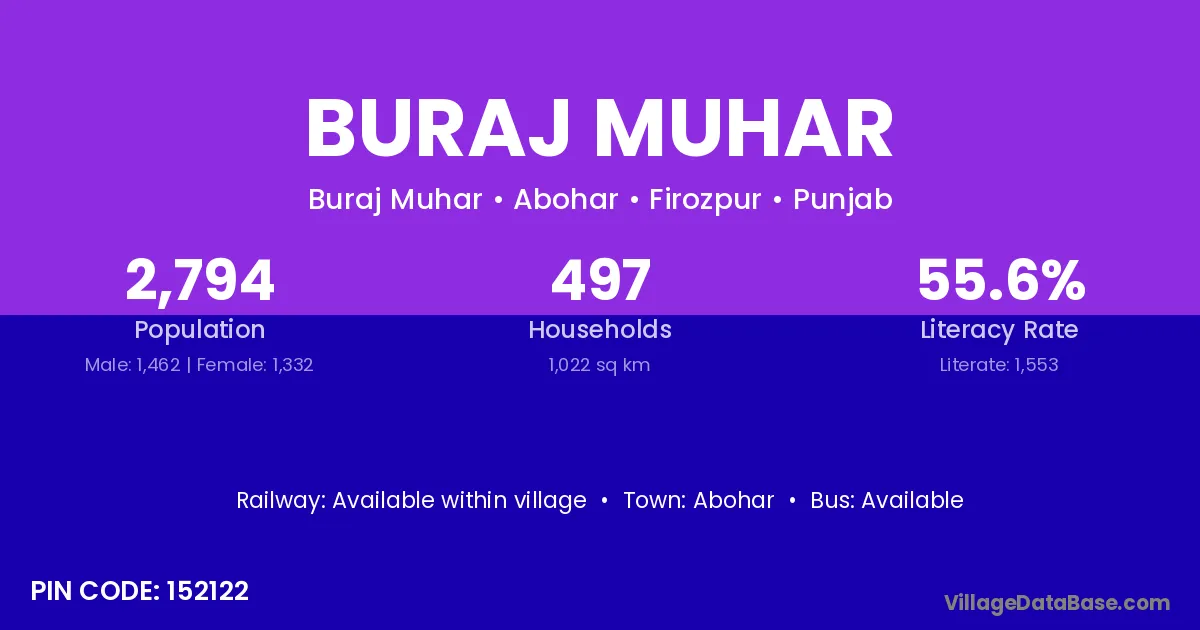 Abohar is the nearest town to Buraj Muhar village for major economic activities