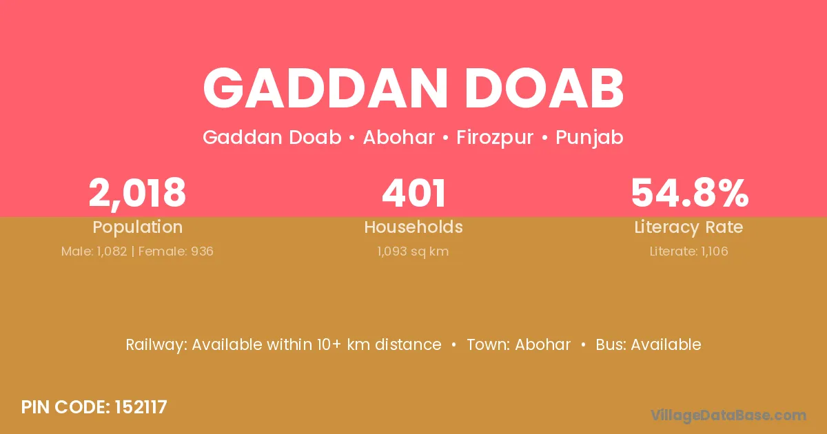 Abohar is the nearest town to Gaddan Doab village for major economic activities