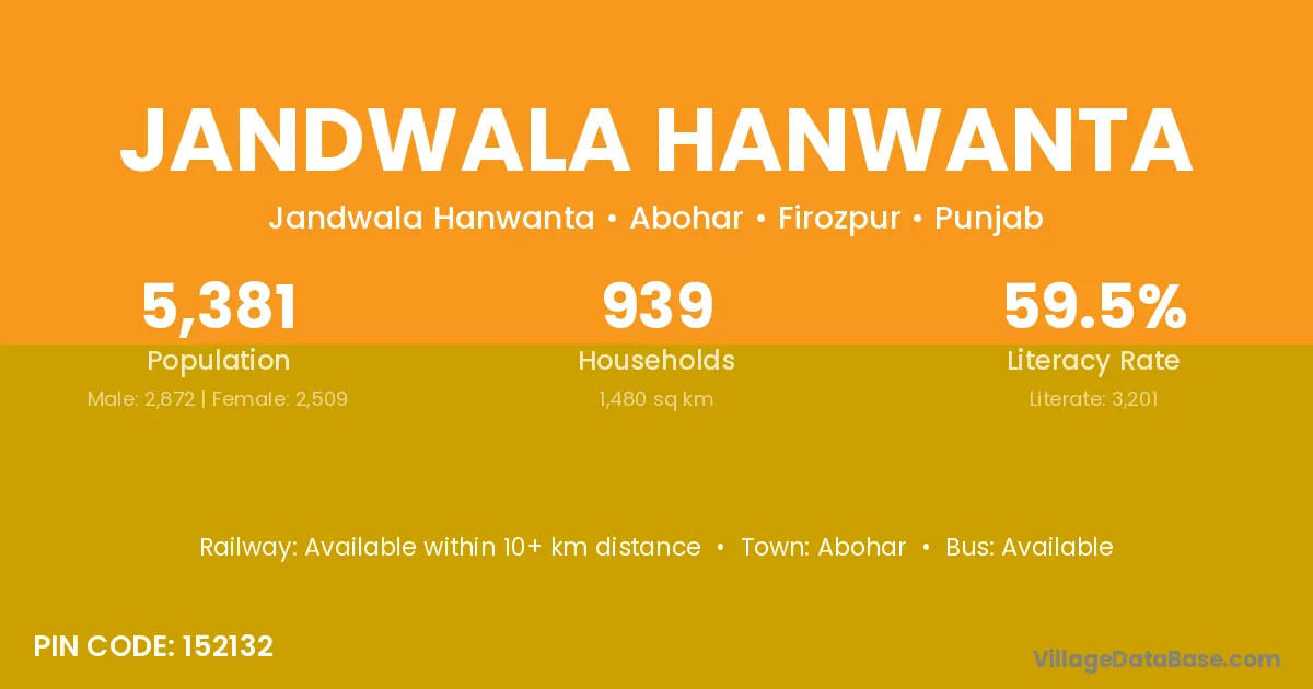 Abohar is the nearest town to Jandwala Hanwanta village for major economic activities