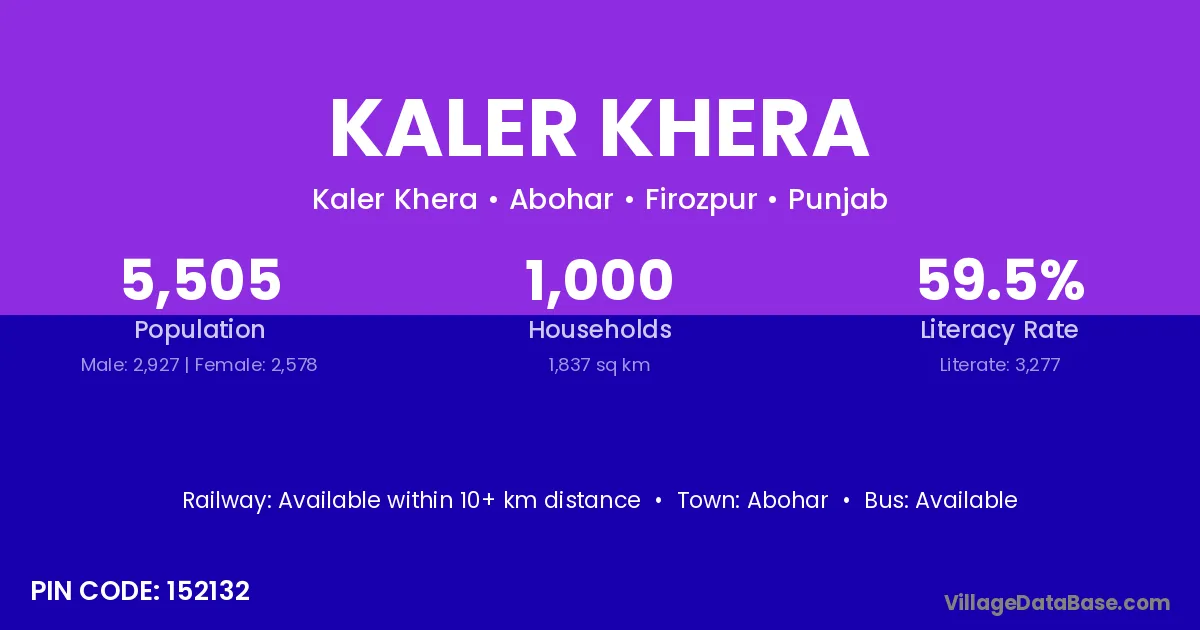 Abohar is the nearest town to Kaler Khera village for major economic activities