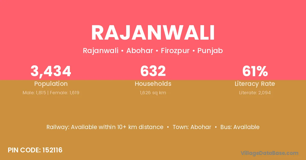 Abohar is the nearest town to Rajanwali village for major economic activities