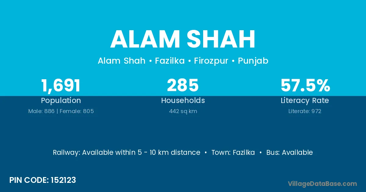 Fazilka is the nearest town to Alam Shah village for major economic activities